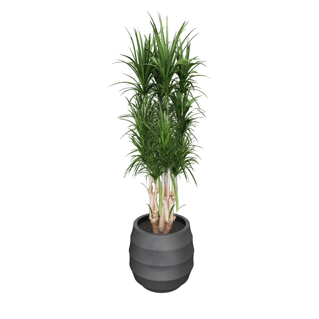 De Dracaena Marginata vertakt heeft een slanke, opgaande vorm met meerdere stammen die samen hoogte en rust brengen in de ruimte. De fijne bladeren zorgen voor een luchtige uitstraling, terwijl de plant als geheel elegant en evenwichtig blijft. Een verfijnde verschijning die ruimte vult zonder te domineren.